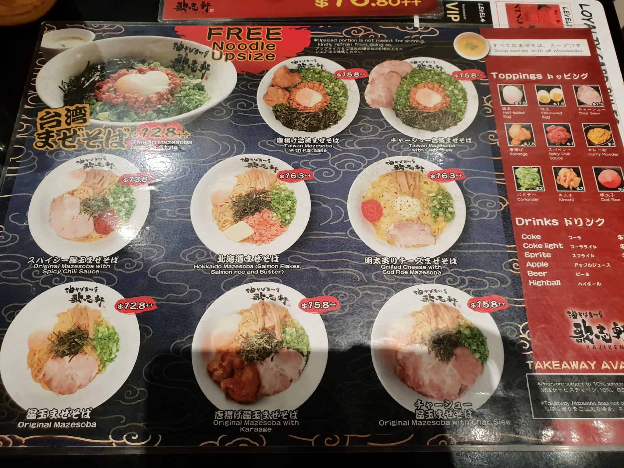 The menu with more varieties and options as per compared to Menya Kokoro at Suntec City.