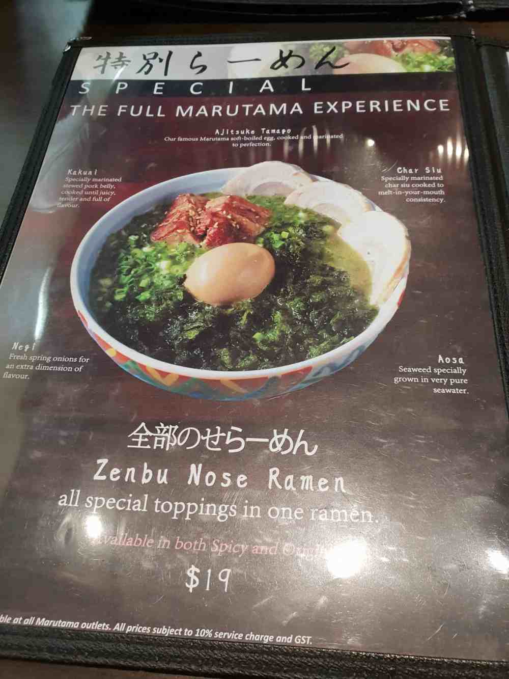 And we both ordered the Zenbu nose ramen for the full marutama experience ($19++)!
