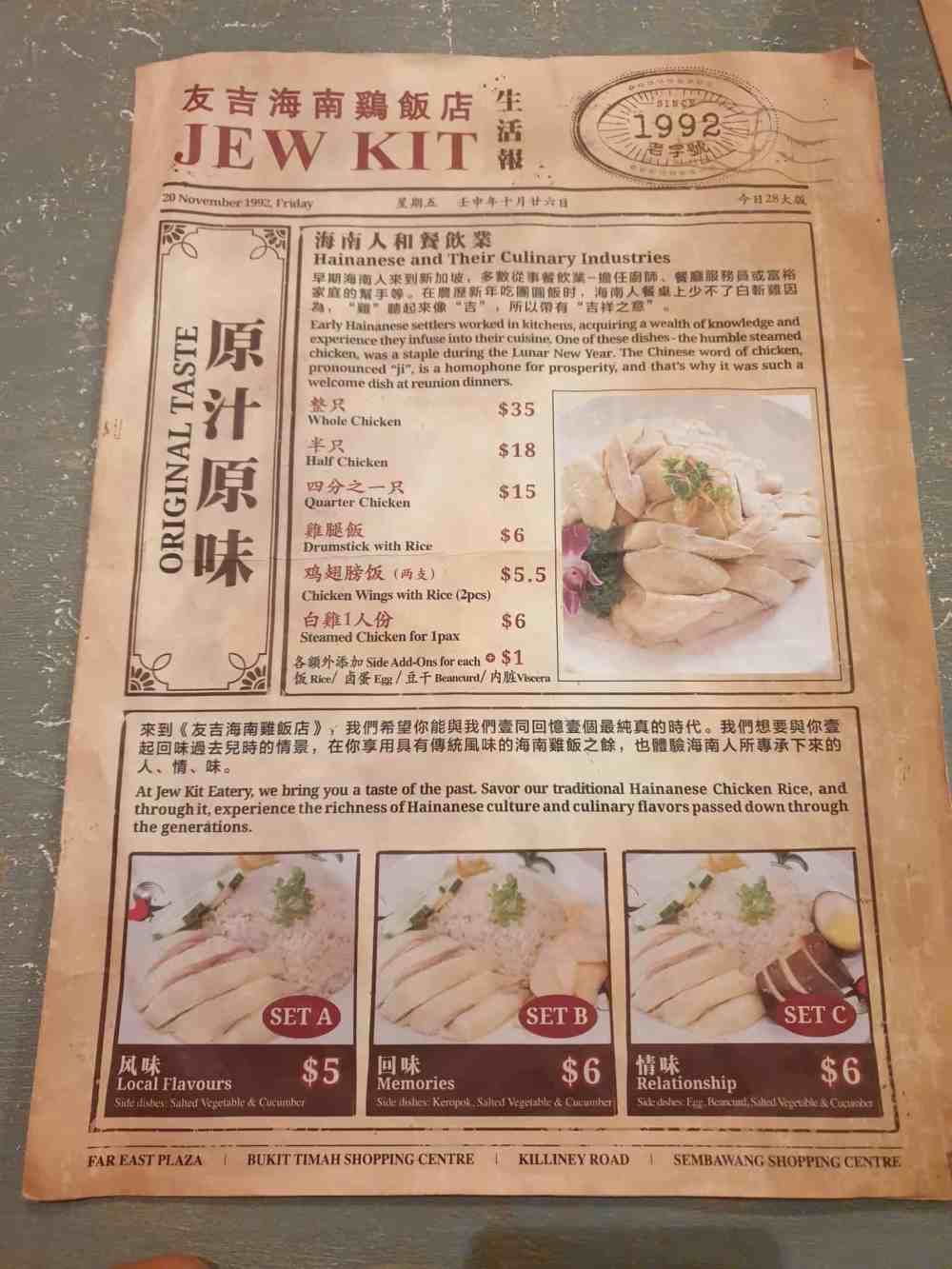 1st time visit to Jew Kit hainanese chicken rice outlet at Killiney Road!