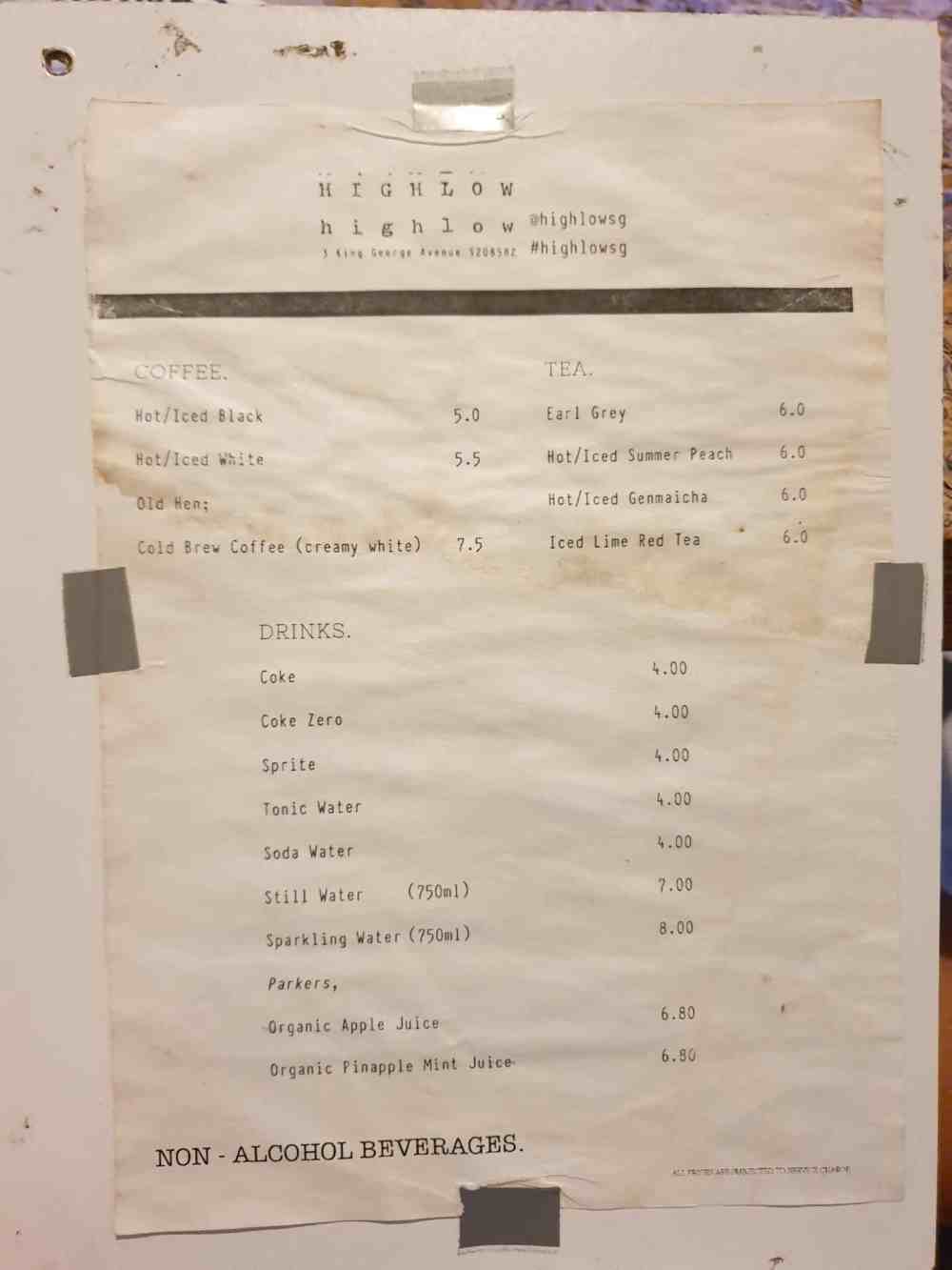 The non-alcohol drinks menu: