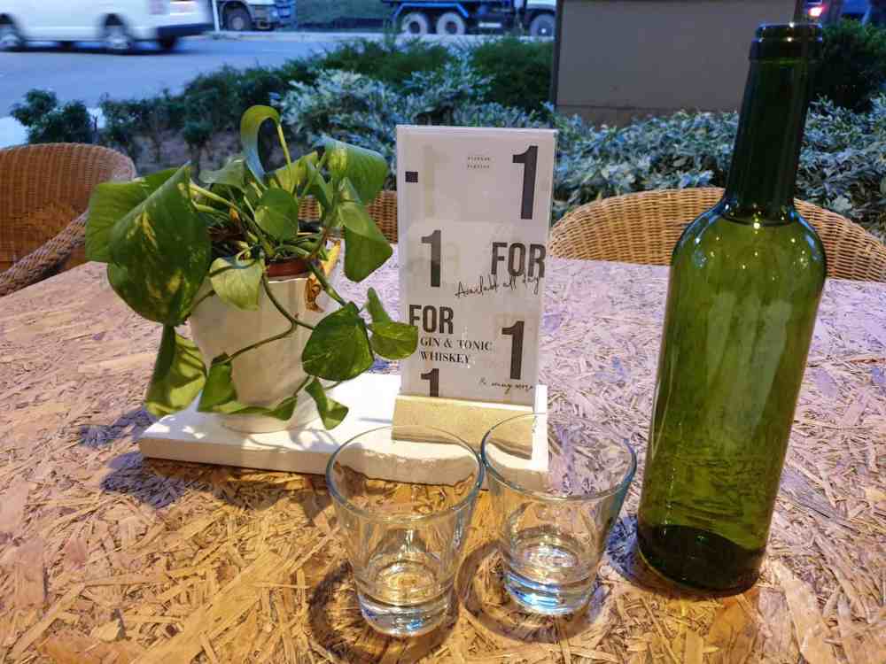 Seated outdoors on that day as the aircon indoor only had bar table chairs seating.