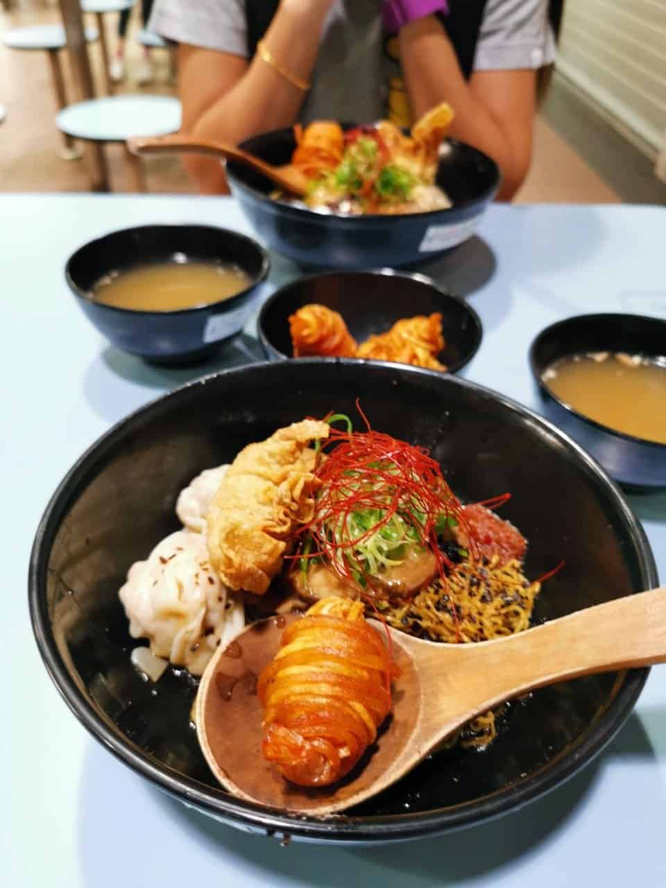 They ran out of onsen eggs and replaced it with a fried wanton dumpling instead. And added on a set of fried potato roll prawns ($4) since there was a long queue and we were famished after the 1 hour.