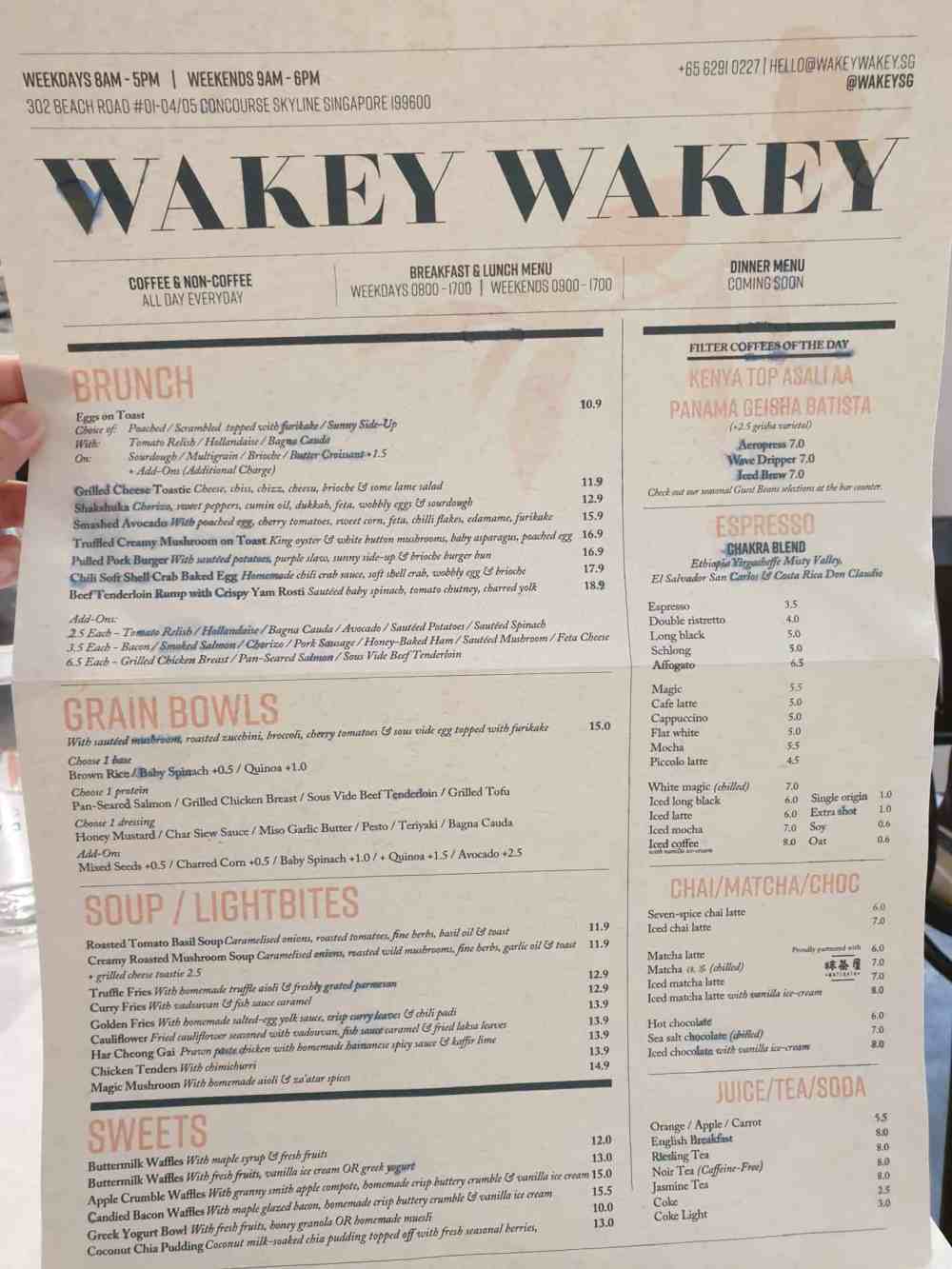The Wakey Wakey menu: