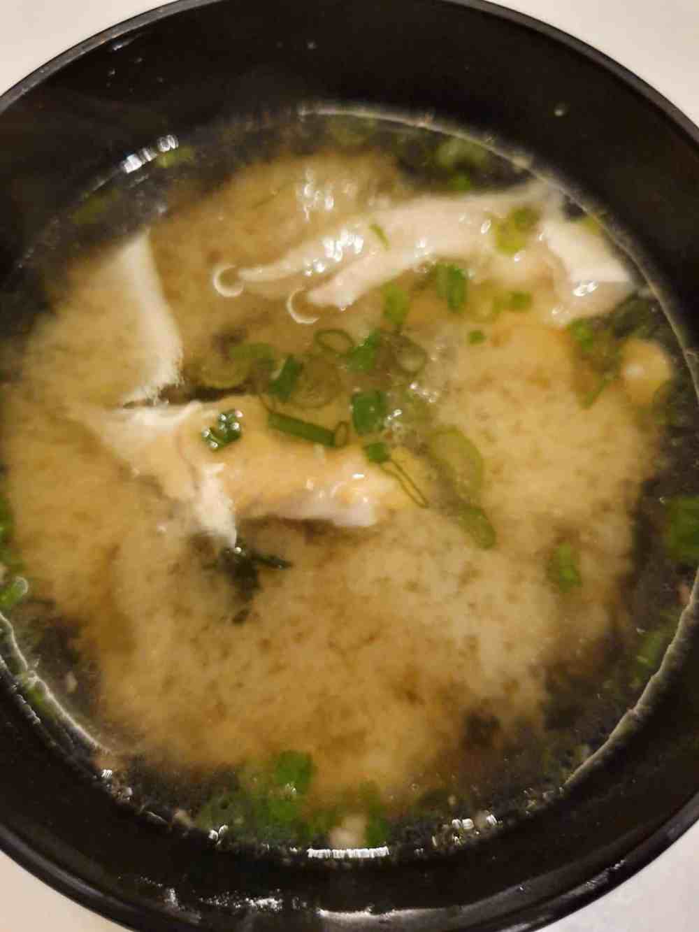 The complimentary salmon miso soup: