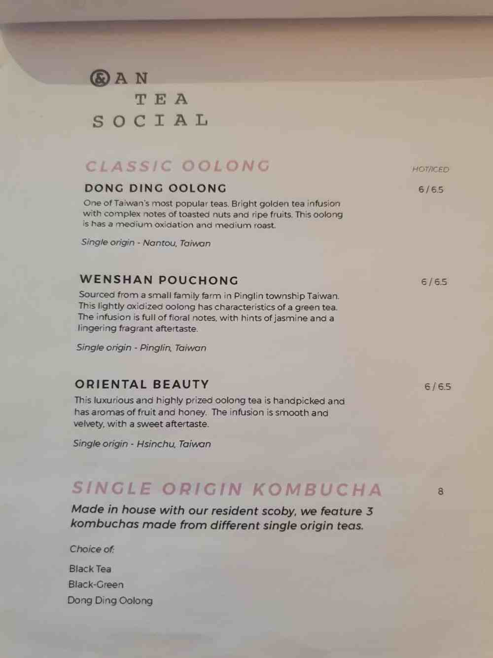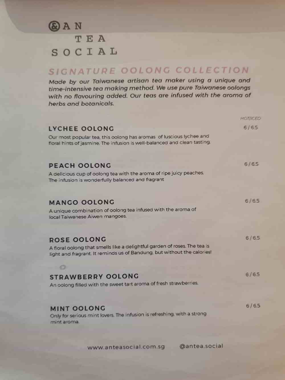 The menu with the signature oolong collection: