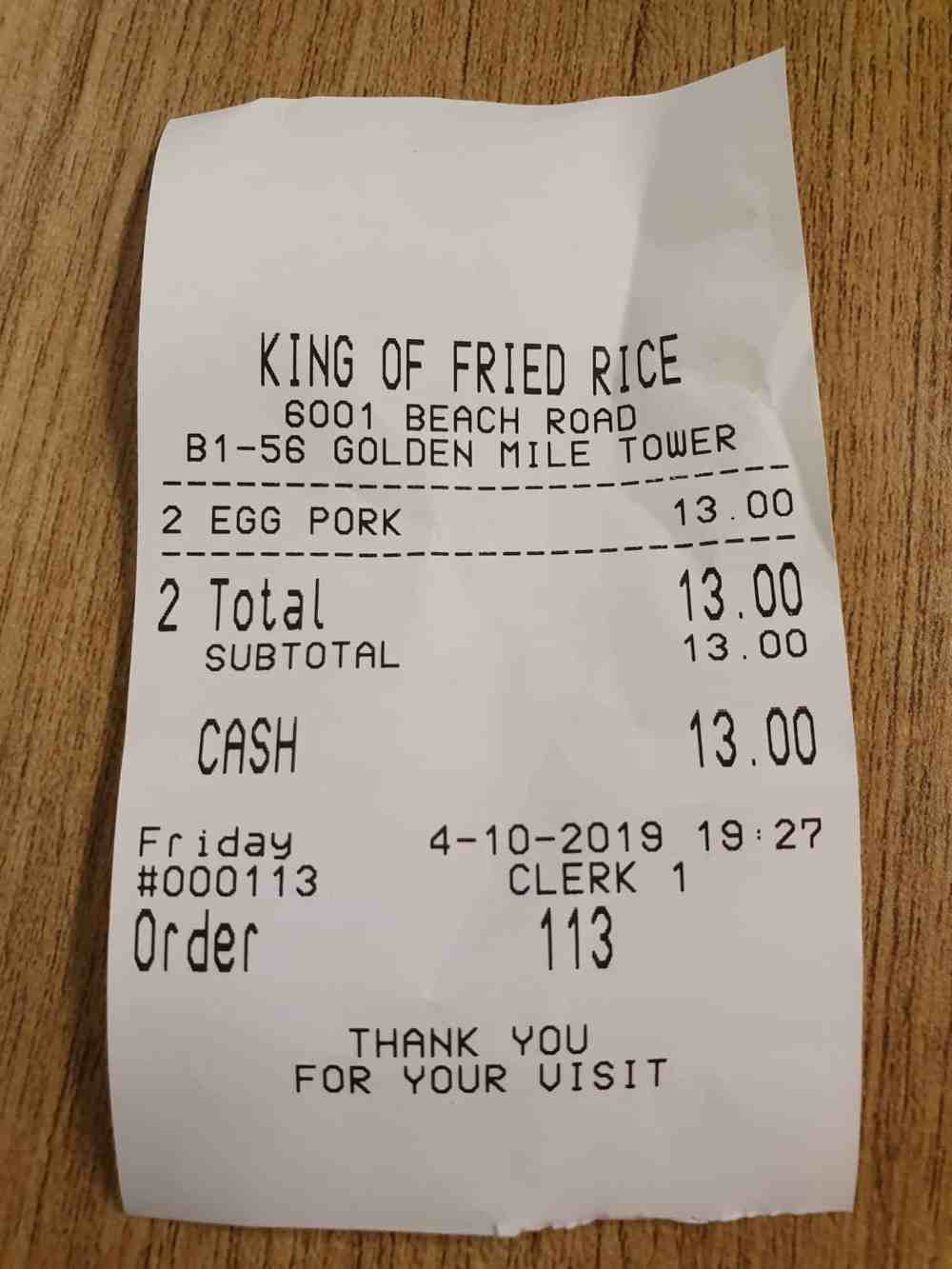 Ordered the egg fried rice with pork cutlet ($6.50), and waited for about half an hour before the food was ready. Self collection with a buzzer!