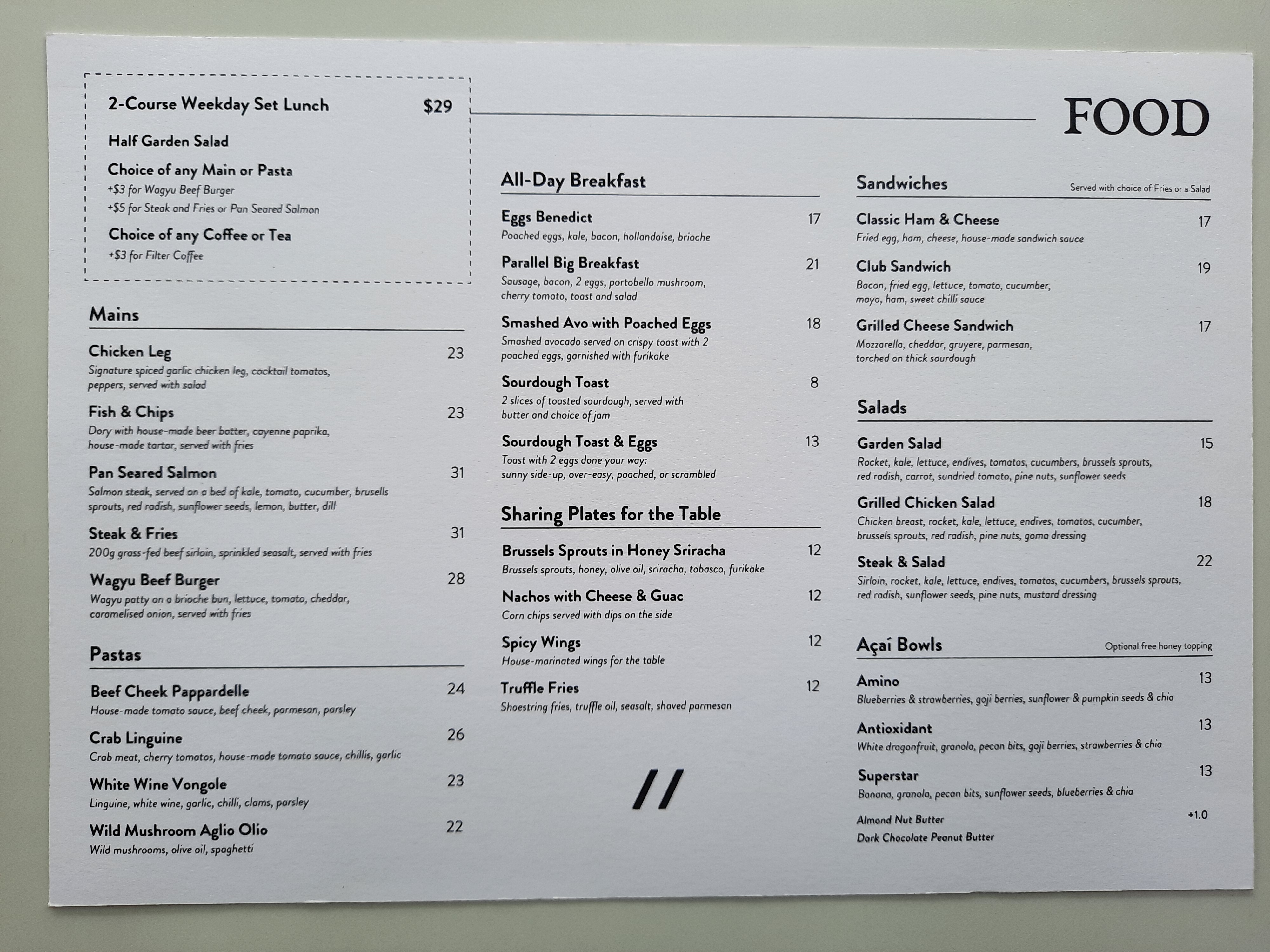 1st time visit on a Saturday to Parallel Coffee Roasters at the newly opened Club Street branch (near Telok Ayer MRT) for late brunch!